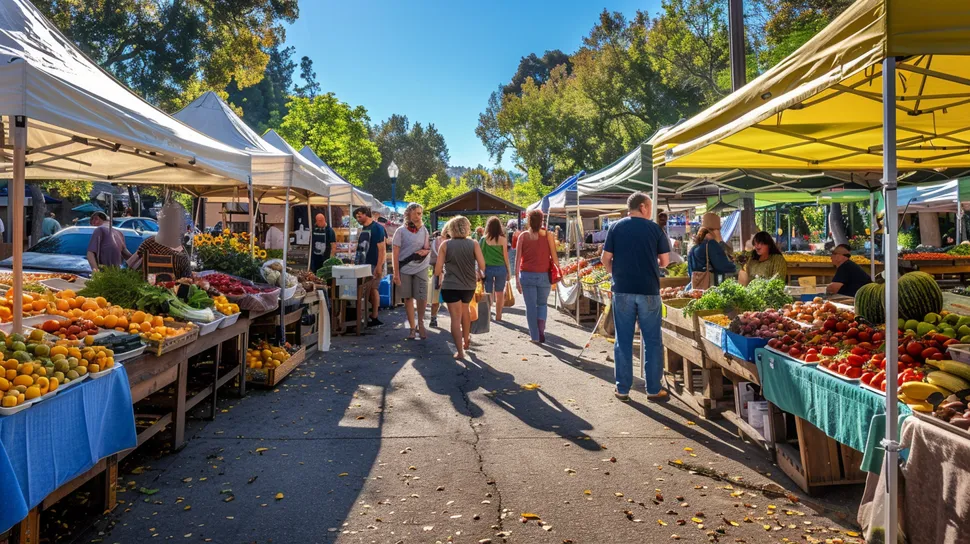 GPT-4o 声明:“这张图片描绘了一个阳光明媚的日子里热闹的户外农贸市场。帐篷下设立了各种摊位,展示着大量新鲜农产品,包括水果、蔬菜和其他商品。人们在市场里走来走去,浏览、购物,并与摊贩互动。市场似乎坐落在一个绿树成荫的宜人区域,背景中可见绿叶。市场氛围看起来充满活力和社区感,重点是当地的新鲜产品。”